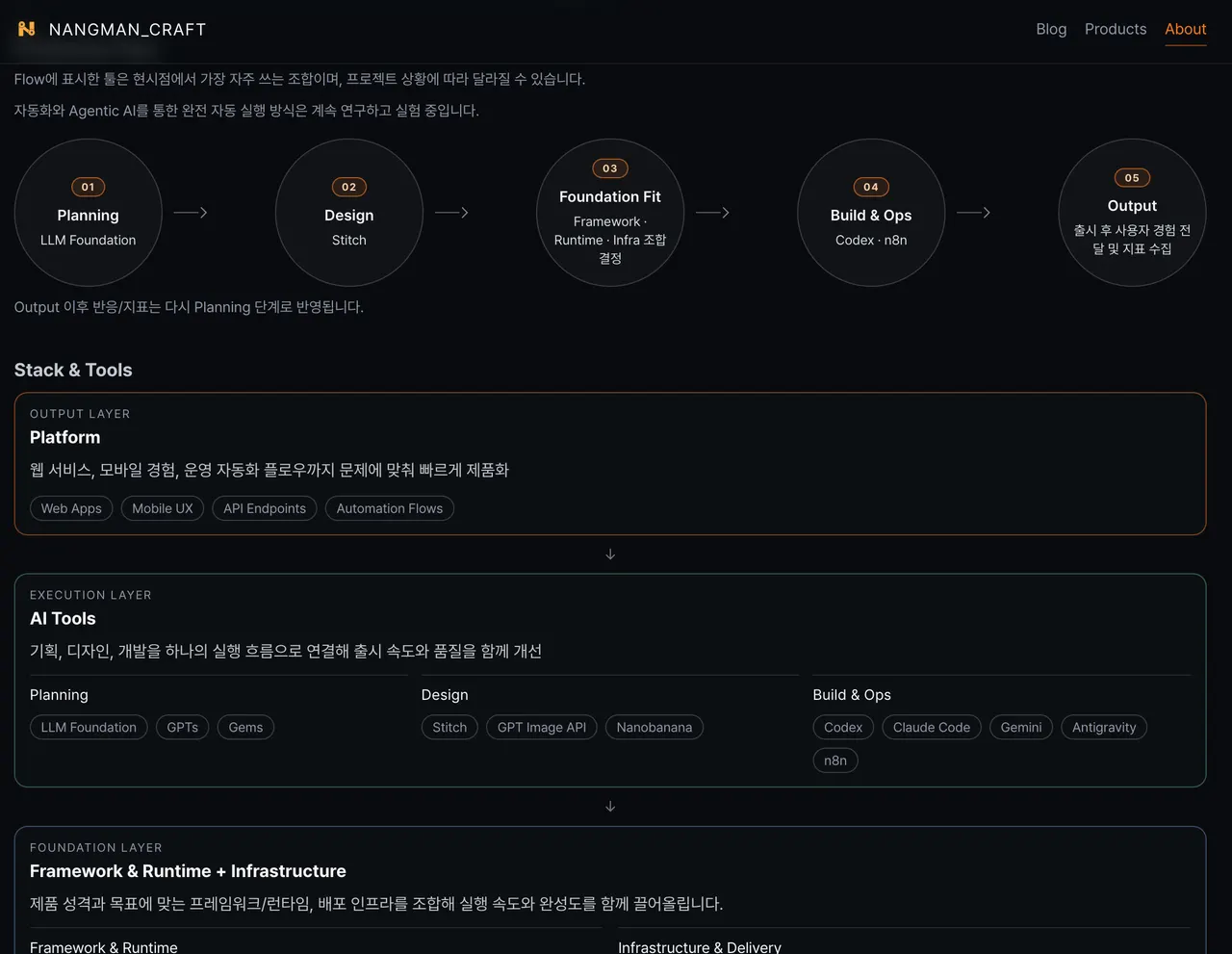 즉 nangman_craft는 다른 제품을 소개하는 사이트이기도 하지만, AI를 활용한 solo product system이 실제로 어떻게 굴러가는지 보여주는 사례이기도 합니다.